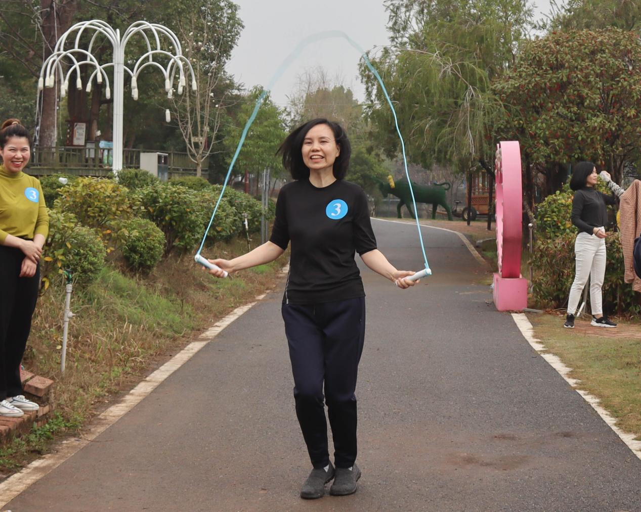 本次活動共設(shè)跳繩、顛氣排球和搶凳子三個游戲項目,參賽人員分為八組進行比拼。比賽場上,眾位“女神”各展身手,配合默契,“男神”們則作為幫幫團參與比賽,現(xiàn)場熱烈的歡呼聲和加油助威聲此起彼伏,洋溢著歡快的節(jié)日氣氛。